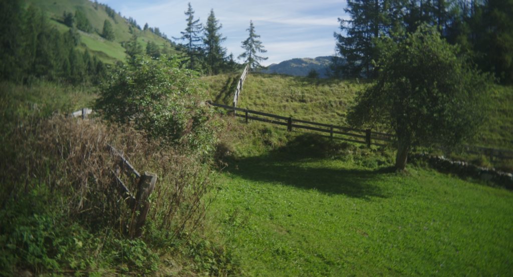 Der Ort bleibt, nur die Zeit ist im Fluss. Die Spuren der Zeit: die Erinnerung des Ortes. Die gelebten Leben. Der Ort: Scarvens. Heute eine Wiese. Früher stand hier Rosina’s Haus. In ihm Rosina’s Tisch.